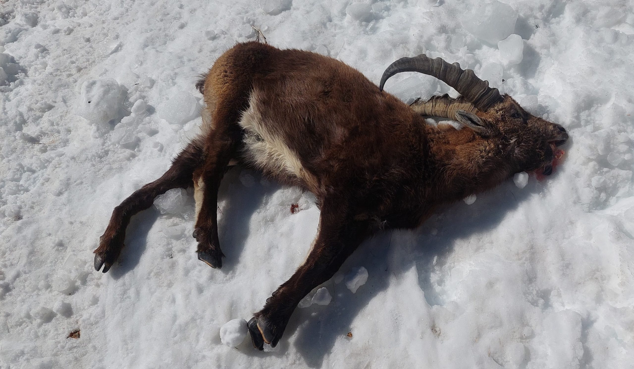Im längsten Eisfall von Cogne mit einem glücklichen Gast und einem unglücklichen Steinbock. Alles lief wunderbar an diesem Tag in «Cold Couloir», dem längsten Eisfall des Cognetals. Bis ich aus dem Augenwinkel ein grosses, dunkles «Etwas» auf uns zu rasen sah. Der Steinbock musste – womöglich in einem Kampf – ausgerutscht sein und schlug einen Meter über unseren Köpfen ein. Wir fanden ihn 300 Meter weiter unten vor.